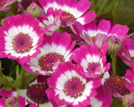 形态特征:多年生草本。常作一年生温室栽培,全株密被绒毛。茎直立。心脏状卵形大叶片,叶缘具波状或多角状齿,形似黄瓜叶片,故名瓜叶菊,茎生叶的叶柄有翼,根出叶叶柄无翼。头状花序簇生呈伞房状,花有紫红、桃红、粉、藕、紫、蓝、白等色,瓣面有绒光。园艺品种极多。大致可分为大花型、星形、中间型和多花型四类,不同类型中又有不同重瓣和高度不一的品种。喜凉爽,但惧严寒和高温。可在低温温室或冷床栽培,以夜温不低于5℃,昼温不高于20℃为最适宜。生长适温为10℃~15℃,温度过高时易徒长。生长期宜阳光充足,并保持适当干燥。暖地可作二年生露地花卉栽培。喜富含腐殖质、排水良好的沙壤土。花期长,由12月可延续至次年5月。