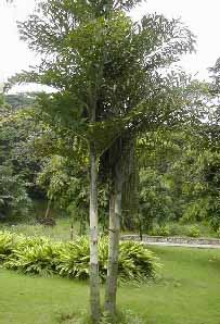 特征:乔木,干单生,高达20m。叶为二回羽状全裂,裂片暗绿色,厚而硬,顶端扇形,不规则齿缺,侧面菱形似鱼尾,长20-30cm,内侧边缘有粗齿超过全长之半,外侧边缘延伸成长尾尖。总苞和花序无鳞粃,花序长3m,分枝悬垂。花3朵,聚生,雌花介于2雄花之际,雄花萼片宽圆形,长约5mm,花瓣黄色,长约2cm,雄蕊多数;雌花较少,长不及1cm,花蕾三棱形。果球形,直径1.8-2cm,淡红色,种子1-2颗。