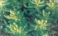 形态特征:植株低矮丛生,叶片膨大为卵形或圆筒形,互生,长0.6-1.2cm,端钝圆,亮绿色,光滑。伞形花序下垂,花白色。